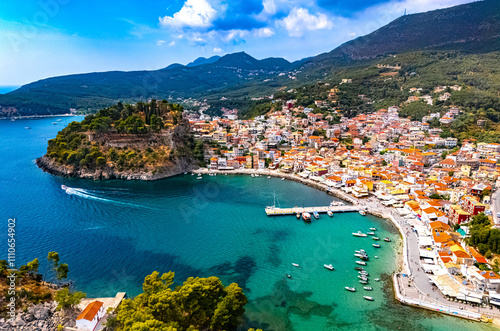 Aerial view of Parga, in the region of Preveza in Epirus, Greece