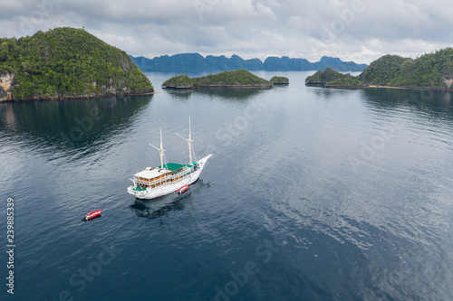 Aerial View of Pinisi Schooner and Islands in Raja Ampat