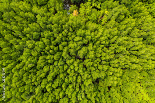 Aerial view of rivers in tropical mangrove forests