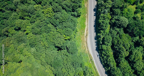 Aerial View Of Road Running Through Carpathian Mountains Forest