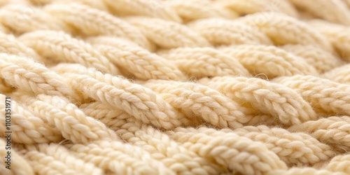 Aerial View of Soft Light Beige Woolen Textile Background Showcasing the Intricate Texture and Structure of Cream Fabric in Macro Detail for Textile and Fashion Photography