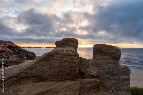 Aerial View of Stunning Ocean Coastline in Portugal at Sunset