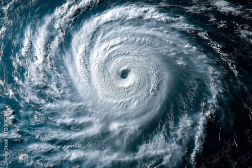 Aerial View of Swirling Tropical Hurricane Over Ocean