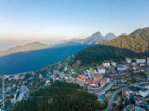 Aerial view of Tam Dao town - travel destination in Vinh Phuc, Vietnam