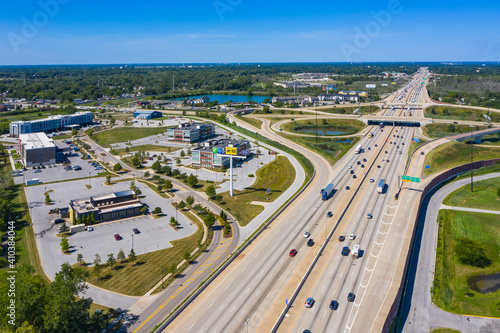 Aerial view of the big junction highway road in the south district of Chicago in Illinois during a beautiful sunny day, United States of America
