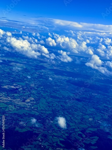 Aerial View of the English Countryside near London, United Kingdom, with Green Fields and Clouds