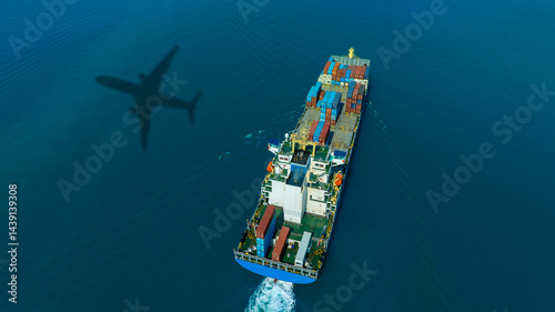 Aerial view of the freight shipping transport system cargo ship container. international transportation Export-import business, logistics, transportation industry concepts