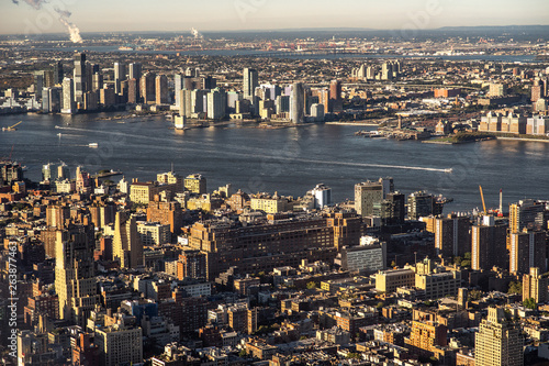 Aerial view of the Lower East Side of Manhattan with Brooklyn in the background