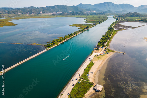 Aerial view of the Neretva river delta valley near Ploce, Dalmatia, Croatia.