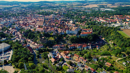 Aerial view of the old town Bautzen in Germany on a sunny noon in spring