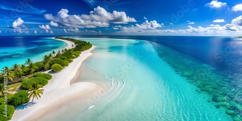 Aerial view of the pristine white sandy beach and crystal-clear turquoise water Creative AI, clear, sand, island