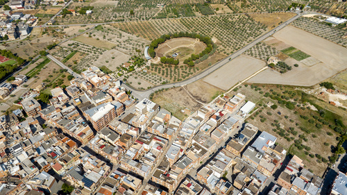 Aerial view of the Roman amphitheater of Lucera, in the province of Foggia, Puglia, Italy. It is a Roman amphitheater located on the outskirts of the town.