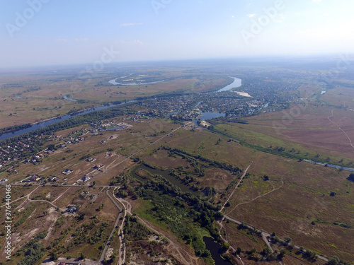 Aerial view of the saburb landscape (drone image). Near Kiev