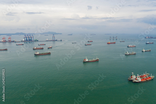 Aerial view of the ship carrying the lpg and oil tanker in the sea port. For energy export and import business for transportation