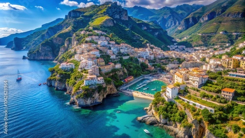 Aerial view of the stunning Amalfi Coast in Italy, Italy, Amalfi Coast, Mediterranean, coastline