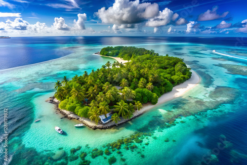 Aerial View of Tropical Island with Turquoise Water – Dream Travel Destination