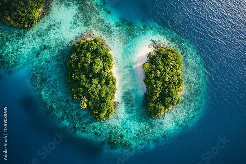 Aerial view of tropical islands with white sand beaches and turquoise waters in the Pacific Ocean