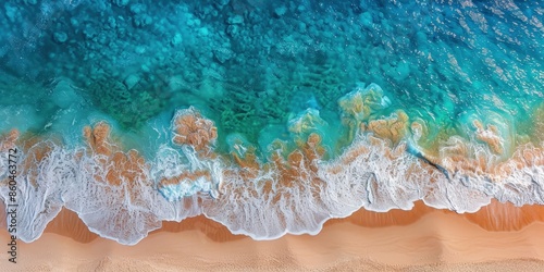 Aerial View of Turquoise Water Crashing on a Sandy Beach