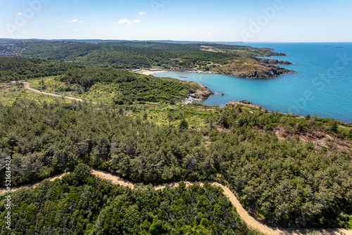 Aerial view of Uzunya beach at the Black Sea coast, Istanbul, Turkey.