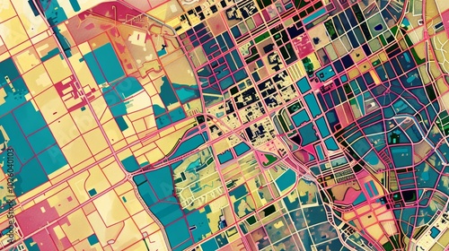 Aerial View of Vibrant and Intricate City Landscape with Geometric Patterns