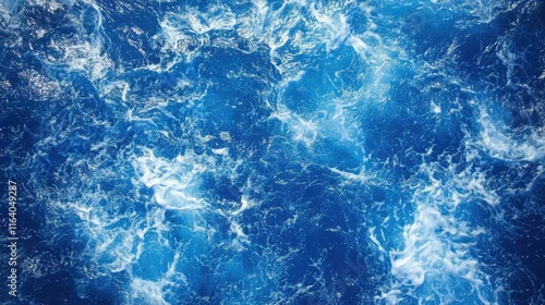 Aerial view of vibrant blue ocean waves creating dynamic water texture for nautical themed backgrounds and designs