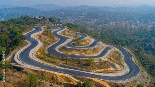 Aerial View of Winding Mountain Road, Breathtaking Scenery
