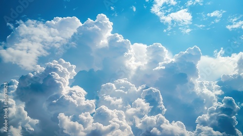 Aerial view White clouds in blue sky, high above the Earth's surface, creating a picturesque scene