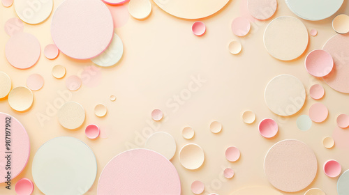 Aesthetic pastel minimalist background with paper circles, dots of different colours. Web banner template. Generative AI