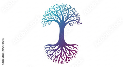 Aesthetic tree with roots and leaves in gradient colors, symbolizing growth and connection