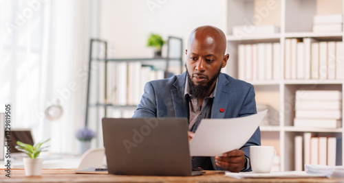 African American business man Accounting using calculating income-expenditure and analyzing real estate investment data report Financial and tax systems concept.