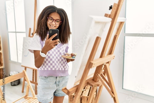 African american girl using smartphone drawing at art school