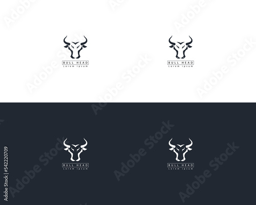 African Bison Bull Head, Silhouette buffalo head Front view logo design template, American buffalo head face elements for logo, label, emblem, sign Isolated on white background vector illustration.