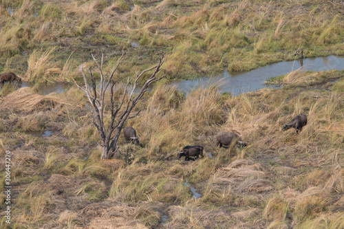 African buffalo from a helicopter, Okavango Delta, Botswana, Africa