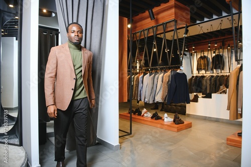 African businessman in elegant classic suit in a premium men's clothing store