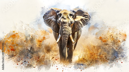 African Elephant in Watercolor Style