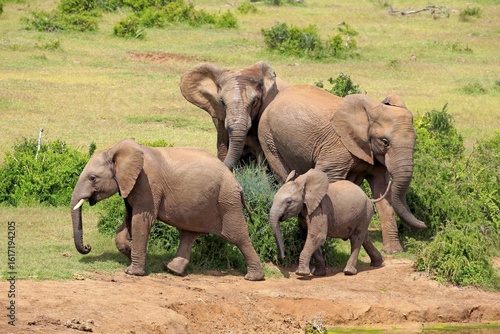 African Elephants (Loxodonta africana), group with young, Addo Elephant National Park, Eastern Cape, South Africa