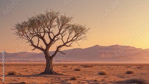 african lone acacia tree with Namib desert - Namibia, South Africa.,Solitary Tree in Desert Landscape at Sunrise or Sunset