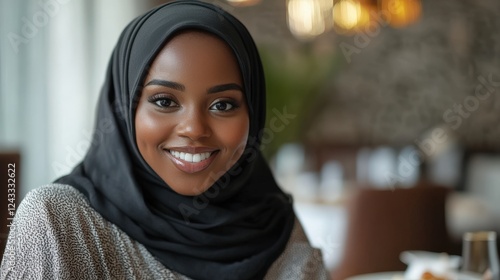 African Muslim Woman Celebrating Ramadan Mubarak Photo.Fictional Character Created By Generative AI