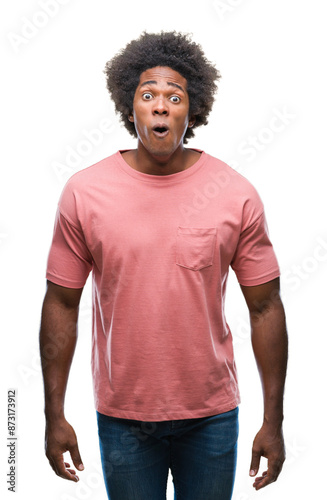 Afro american man over isolated background afraid and shocked with surprise expression, fear and excited face.