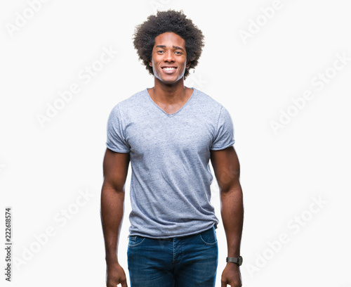 Afro american man over isolated background with a happy and cool smile on face. Lucky person.