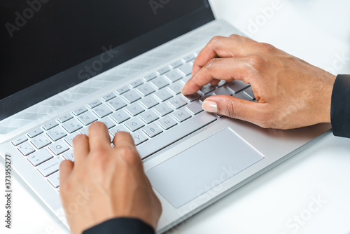 afro american woman using a silver laptop