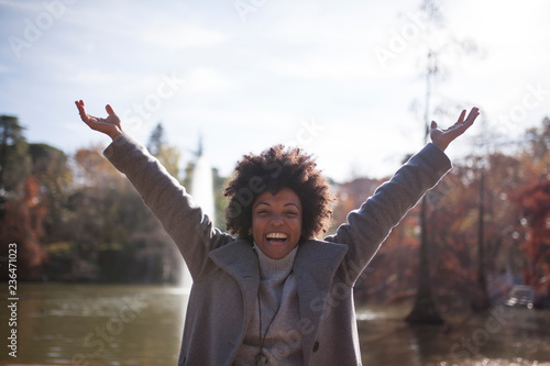 Afro woman having fun in the park