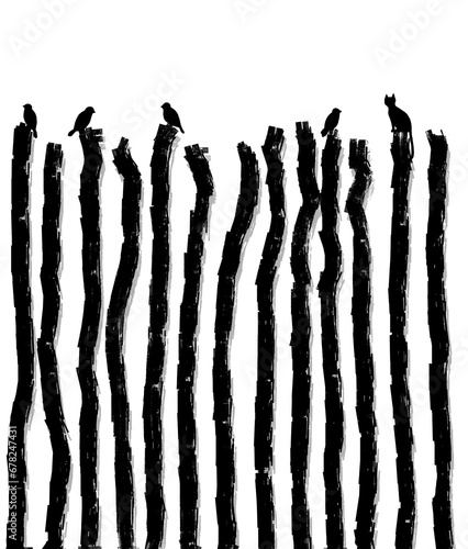 afterglow, Silhouettes of a cat and a bird sitting at the end