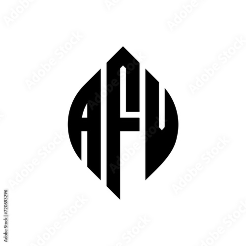 AFV circle letter logo design with circle and ellipse shape. AFV ellipse letters with typographic style. The three initials form a circle logo. AFV Circle Emblem Abstract Monogram Letter Mark Vector.