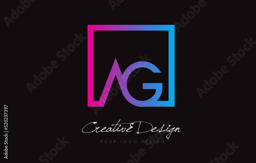 AG Square Frame Letter Logo Design with Purple Blue Colors.