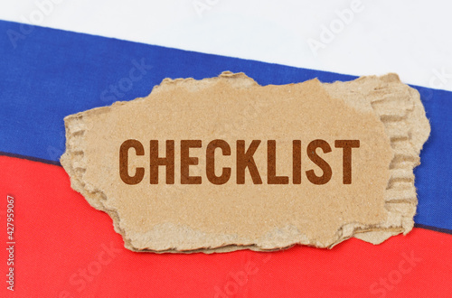 Against the background of the Russian flag lies cardboard with the inscription - Checklist