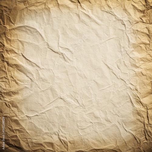 Aged, crumpled parchment texture; light beige tones, deeply creased, vignette effect