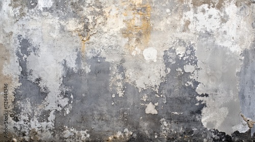 Aged grey concrete wall texture with peeling plaster and weathered surface features for use in backgrounds and design projects