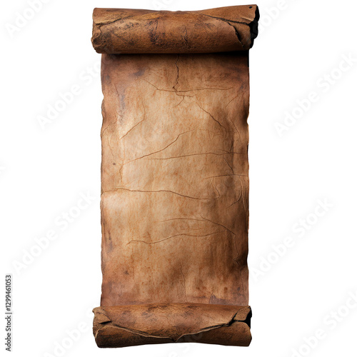 Aged parchment scroll with curled edges reveals antiquated textured paper