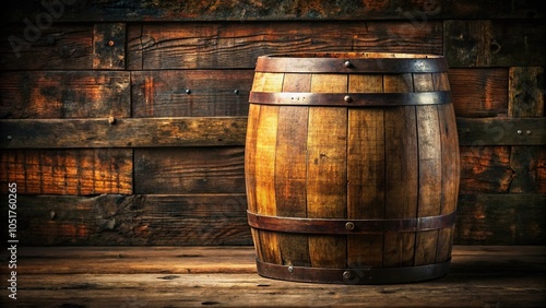 Aged whiskey barrel with intricate wooden grain pattern and rich patina on the surface, antique furniture, vintage barrel, rustic decor, weathered wood